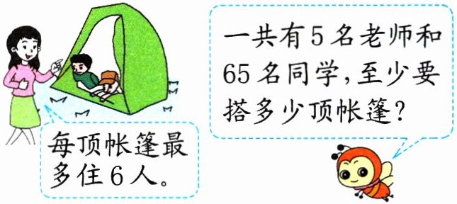 $5 + 65 = 70$(人) $70\div6 = 11$(顶)……4(人)$11 + 1 = 12$(顶)