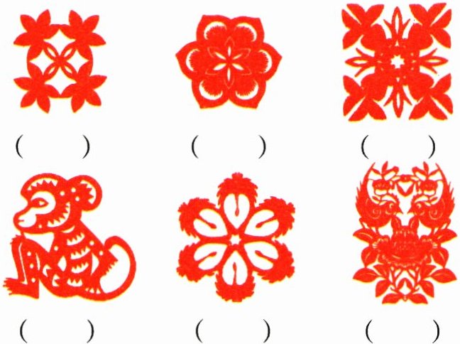3. 下面的剪纸中,哪些是轴对称图形。请在下面画“√”。你能动手剪一剪吗?