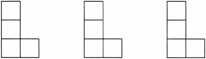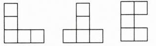 4. 下面的3幅图都是由4个正方形组成的。请你用3种不同的方法分别在下面的3个图形中添上1个正方形,使它们成为轴对称图形。