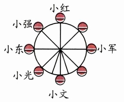 (1)当小东转到小红现在的位置时,小军转到了谁现在的位置?用笔圈一圈。