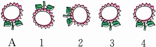 4. 转一转,移一移,我还能够找到你。(把由 A 变化得到的图形,是平移的涂黄色,是旋转的涂红色)