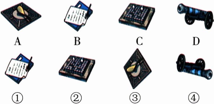 3. [新情境·传统文化]我国四大发明分别是:指南针、造纸术、印刷术、火药。先观察再选一选。