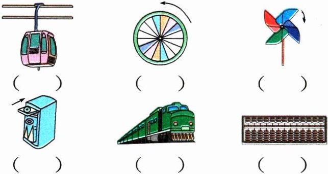 1. 观察下面物体的运动是平移现象的在括号里画“△”,是旋转现象的在括号里画“〇”。