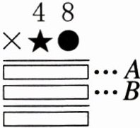 (2)如图是笔算两位数乘两位数的计算过程。第一步得数是A,第二步得数是B,A与B比较,( )。