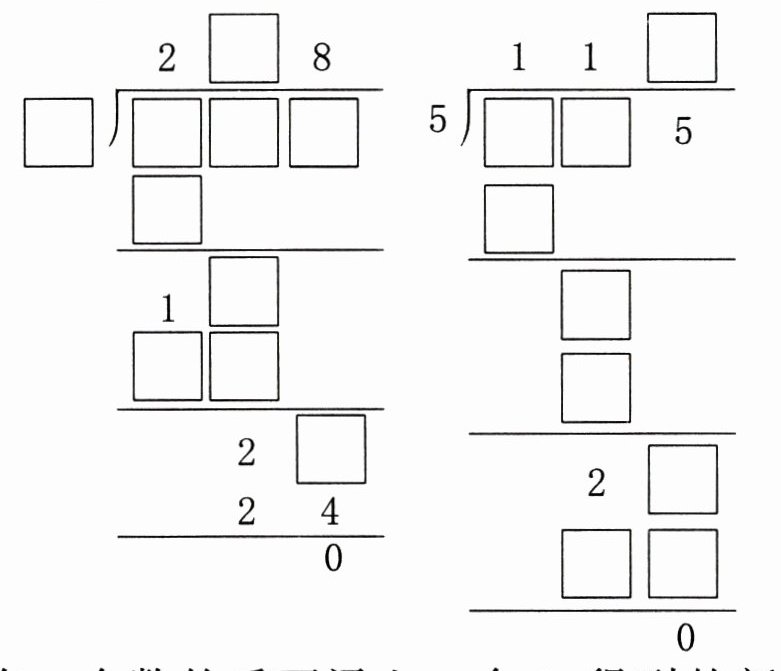 (5)要使$\square$75÷5 的商是三位数,$\square$里最小填( );要使 784÷$\square$的商是三位数,$\square$里最大可以填( )。