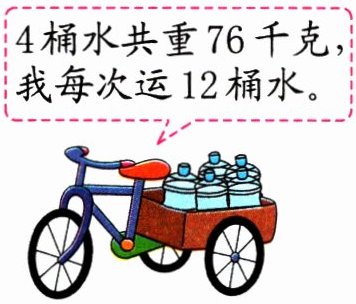 $12×16 = 192$(桶) 解析:王叔叔每次运12桶水,求16次一共运了多少桶水,就是求16个12是多少;而题中的“4桶水共重76千克”是多余信息,与问题无关。