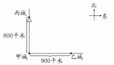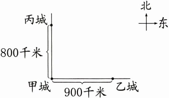 ②B 汽车从甲城出发向北行驶 10 时后大约在什么位置?用“△”标出来,此时距离丙城多远?