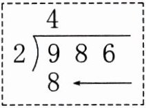 (1)在用竖式计算986÷2时,箭头指的“8”表示( )。