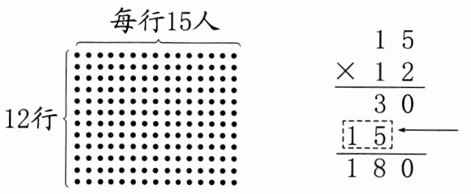 (1)学校举行体操表演,每行有15人,一共有12行(如下图)。小芳通过列竖式计算知道一共有180人参加表演。