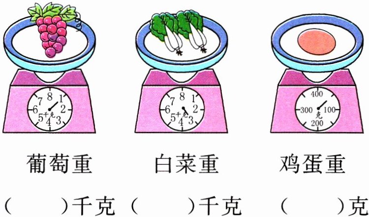 2. 在括号里填上合适的质量单位。(克、千克)