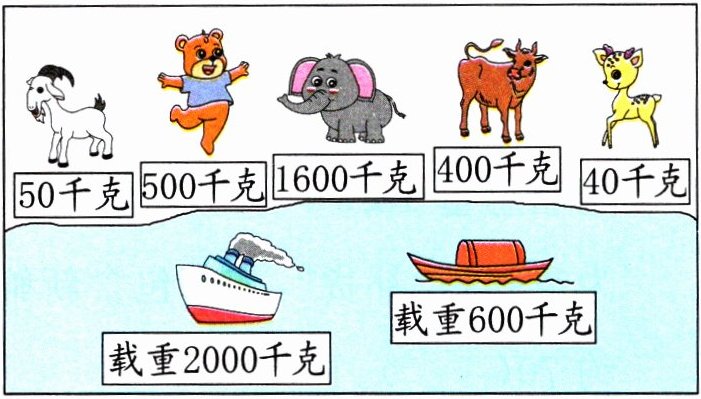 (1)你能够按照从重到轻的顺序让小动物站一下队吗?