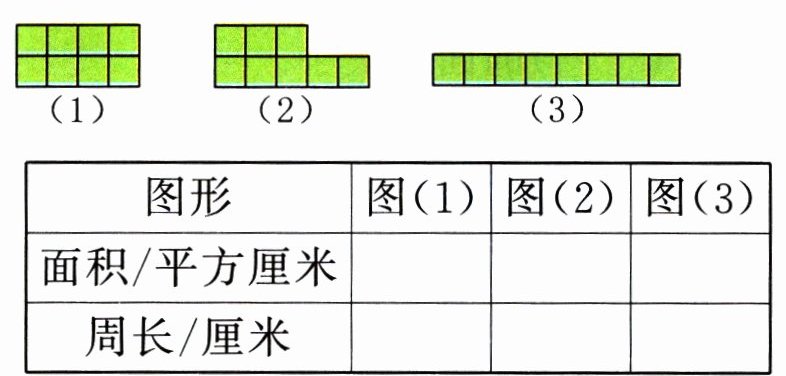(3)用 4 个面积是 1 平方厘米的正方形拼成一个大正方形,大正方形的面积是( )平方厘米,周长是( )厘米。