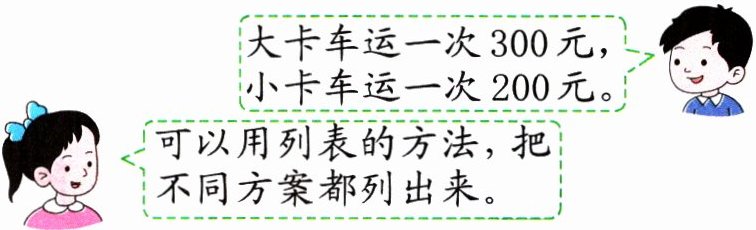 4. 用大、小卡车往城市运 21 吨蔬菜,大卡车的载重是 5 吨,小卡车的载重是 3 吨。怎样运最省钱?
