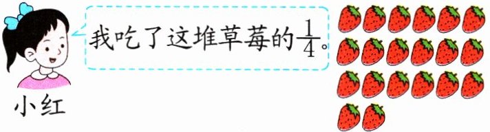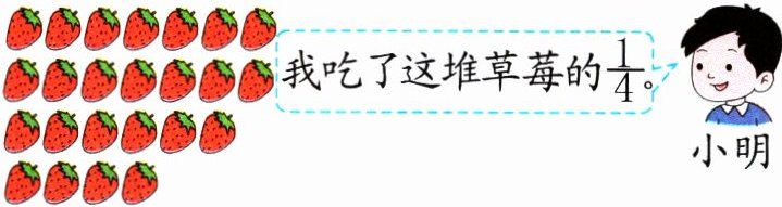 小明吃得多。 解析:虽然两个分数都是$\frac{1}{4}$,但是两堆草莓的数量不一样,$\frac{1}{4}$所代表的具体数量也不一样。小红吃了20个草莓的$\frac{1}{4}$,是5个草莓,小明吃24个草莓的$\frac{1}{4}$,是6个草莓,小明比小红多吃了1个草莓,所以小明吃得多。