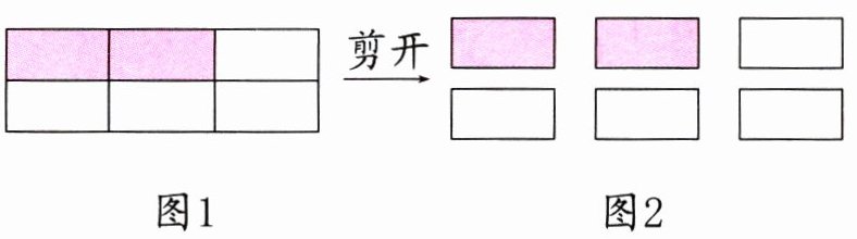 (2)图 2 中涂色部分占( )个小长形的$\frac{(\ \ \ \ )}{(\ \ \ \ )}$,不涂色部分占( )个小长方形的$\frac{(\ \ \ \ )}{(\ \ \ \ )}$。