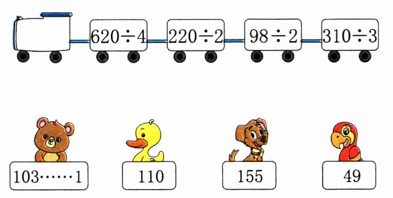 解析:求最少需要多少个箱子,$802\div8 = 100$(个)$\cdots\cdots2$(辆),由此可以看出,802辆玩具车能把100个箱子装满,并剩2辆玩具车,剩余的两辆玩具车也需要一个箱子,所以最少需要101个箱子才能装完。