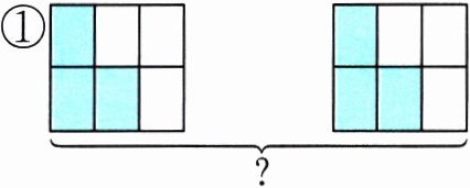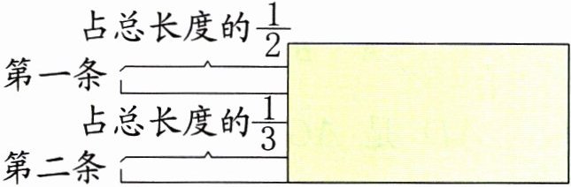 $1-\frac{3}{5}=\frac{2}{5}$@@$\frac{1}{6}+\frac{4}{6}=\frac{5}{6}$@@$\frac{3}{6}-\frac{2}{6}=\frac{1}{6}$@@$\frac{3}{8}+\frac{3}{8}=\frac{6}{8}$ $1-\frac{6}{8}=\frac{2}{8}$@@第二条长一些。因为露出的部分长度相等,第一条共有这样的2份,第二条共有这样的3份,所以第二条长一些。
