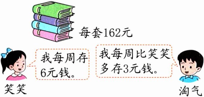162÷6 = 27(周)@@示例:淘气存多少周的钱刚好够买这一套书?