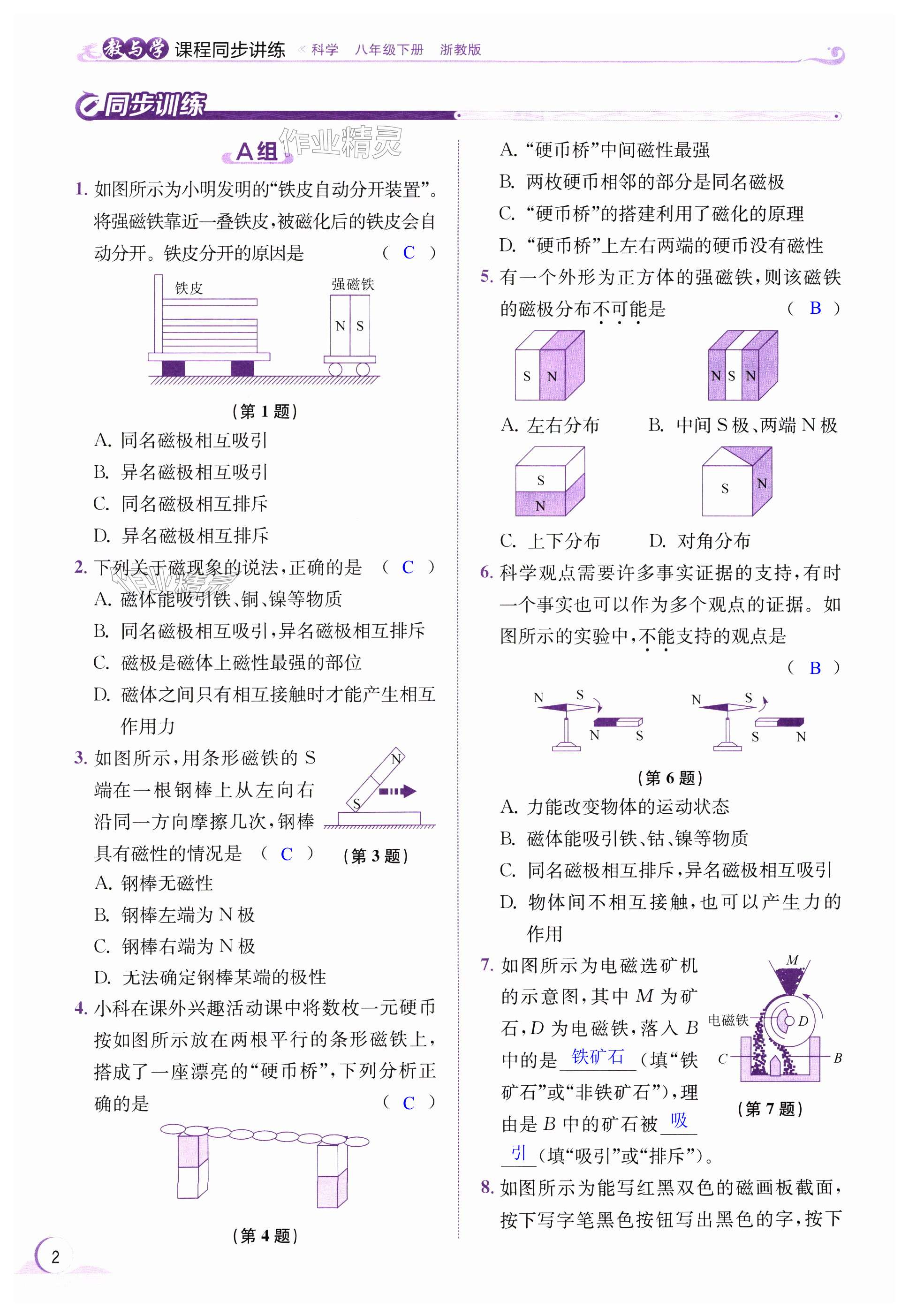 注:目前有些书本章节名称可能整理的还不是很完善,但都是按照顺序排列的,请同学们按照顺序仔细查找。练习册 2025年教与学课程同步讲练八年级科学下册浙教版 答案主要是用来给同学们做完题方便对答案用的,请勿直接抄袭。