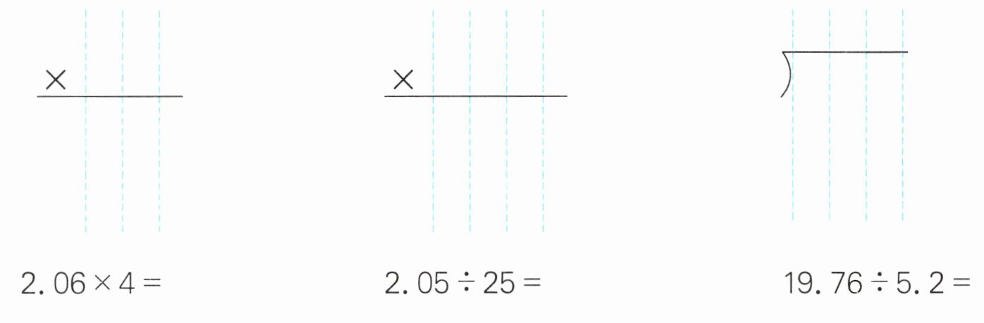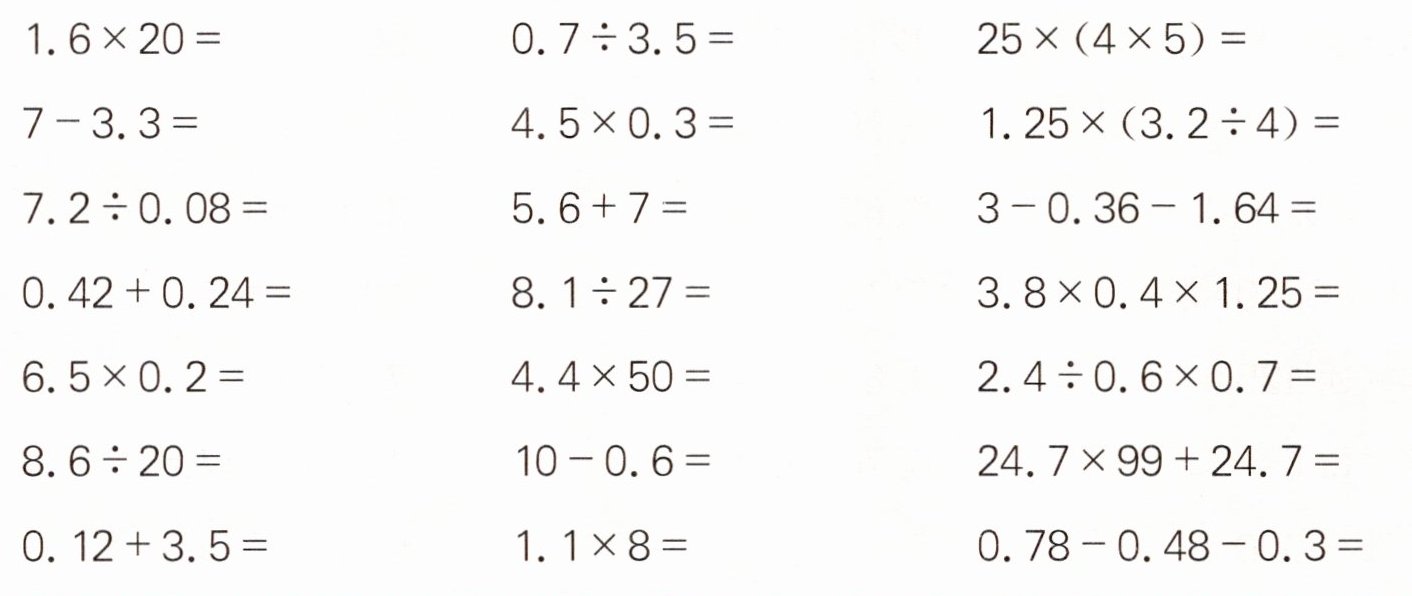 3.5×2.4= 425×0.6= 8.62÷4.3≈(得数保留两位小数)