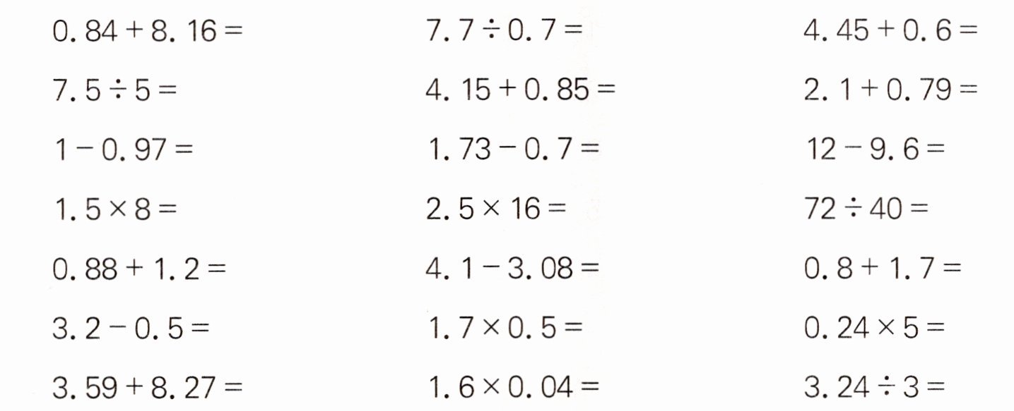 1.5×26= 4.2×3.64= 6.85÷2.5=