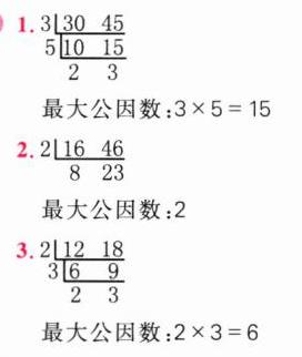 三、用短除法求下面每组数的最大公因数。