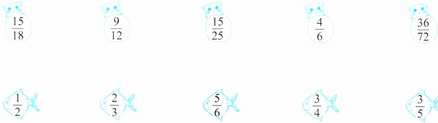 $\frac{15}{20}=\frac{15\bigcirc(\ \ \ \ )}{20\bigcirc(\ \ \ \ )}=\frac{(\ \ \ \ )}{(\ \ \ \ )}$ $\frac{63}{90}=\frac{63\bigcirc(\ \ \ \ )}{90\bigcirc(\ \ \ \ )}=\frac{(\ \ \ \ )}{(\ \ \ \ )}$