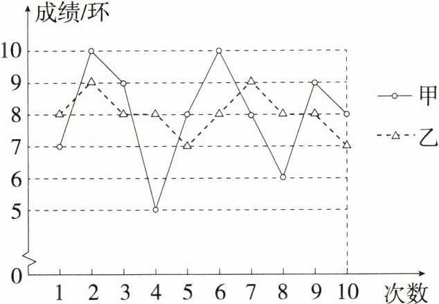 16.要从甲、乙两名同学中选出一名代表班级参加射击比赛.如图所示的是两人最近10次射击训练成绩的折线统计图.