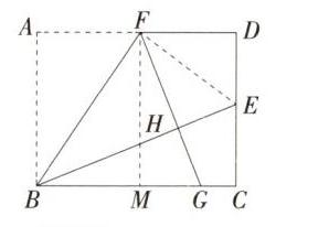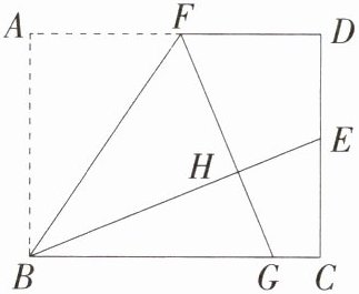 ,连结EF,作FM⊥BC于M。因为四边形ABCD是矩形,所以∠A = ∠C = ∠D = 90°,AB = CD = 6,AD = BC,四边形ABMF、CDFM都是矩形。因为△ABF沿直线BF翻折,点F是边AD的中点,E为线段CD的中点,所以AB = HB = 6,AF = DF = FH,∠A = ∠BHF = ∠EHF = 90°,DE = $\frac{1}{2}$CD = 3。在Rt△DEF和Rt△HEF中,$\begin{cases}EF = EF\\DF = HF\end{cases}$,所以Rt△DEF≌Rt△HEF(HL),所以DE = HE = 3,所以BE = BH + HE = 9,$BC=\sqrt{BE^{2}-CE^{2}}=\sqrt{9^{2}-3^{2}} = 6\sqrt{2}$。因为AD//BC,所以∠AFB = ∠CBF,又因为∠AFB = ∠GFB,所以∠GFB = ∠CBF,所以BG = FG。设BG = FG = x,因为AF = BM=$\frac{1}{2}BC = 3\sqrt{2}$,所以MG = x - $3\sqrt{2}$,因为$FG^{2}=FM^{2}+MG^{2}$,所以$x^{2}=6^{2}+(x - 3\sqrt{2})^{2}$,解得$x=\frac{9\sqrt{2}}{2}$,所以BG = $\frac{9\sqrt{2}}{2}$。