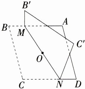 因为点O为菱形ABCD的对角线的交点,所以OC=$\frac{1}{2}AC = 3$,OB = OD=$\frac{1}{2}BD = 4$,∠COD = 90°,所以$CD=\sqrt{OC^{2}+OD^{2}}=\sqrt{3^{2}+4^{2}} = 5$。因为AB//CD,所以∠MBO = ∠NDO。在△OBM和△ODN中,$\begin{cases}\angle MBO=\angle NDO\\OB = OD\\\angle BOM=\angle DON\end{cases}$,所以△OBM≌△ODN(ASA),所以DN = BM。由折叠知BM = $B'M = 1.5$,所以DN = 1.5,所以CN = CD - DN = 5 - 1.5 = 3.5。