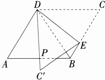 解析:因为四边形ABCD是菱形,∠A = 60°,所以AB = AD,DC//AB,∠C = ∠A = 60°,∠ADB = ∠CDB,所以△ABD是等边三角形,∠ADC = 180° - ∠A = 180° - 60° = 120°,所以∠ADB = 60°。因为P为AB的中点,所以∠ADP = ∠BDP=$\frac{1}{2}$∠ADB=$\frac{1}{2}\times60° = 30°$,所以∠CDC' = ∠ADC - ∠ADP = 120° - 30° = 90°,由折叠得∠CDE = ∠C'DE=$\frac{1}{2}$∠CDC'=$\frac{1}{2}\times90° = 45°$,所以∠DEC = 180° - ∠CDE - ∠C = 180° - 45° - 60° = 75°。