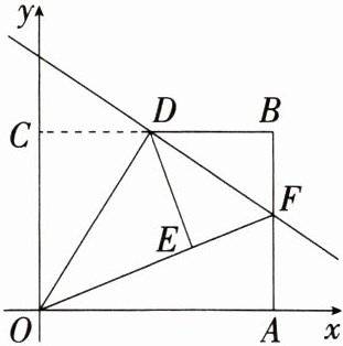 解析:\n(1)因为四边形OABC是矩形,OA = 12,OC = 9,所以∠AOC = ∠OCB = ∠B = ∠OAB = 90°,BC = OA = 12,AB = OC = 9。因为D为BC的中点,所以CD = BD,由折叠得∠DEO = ∠OCB = 90°,CD = DE,OE = OC = 9,所以∠DEF = 90° = ∠B,DE = BD,又因为DF = DF,所以Rt△DEF≌Rt△DBF(HL),所以EF = BF。设BF = EF = x,则AF = 9 - x,OF = 9 + x,在Rt△OAF中,由勾股定理得$(9 + x)^{2}=12^{2}+(9 - x)^{2}$,解得x = 4,所以BF = EF = 4,AF = 9 - 4 = 5,△OAF的面积=$\frac{1}{2}\times12\times5 = 30$。\n(2)由(1)可知B(12,9),C(0,9),F(12,5),因为D为BC的中点,所以D(6,9)。设直线DF的解析式为y = kx + b(k≠0),将点D、F的坐标代入得$\begin{cases}12k + b = 5\\6k + b = 9\end{cases}$,解得$\begin{cases}k=-\frac{2}{3}\\b = 13\end{cases}$,所以直线DF的解析式为y = $-\frac{2}{3}x + 13$。