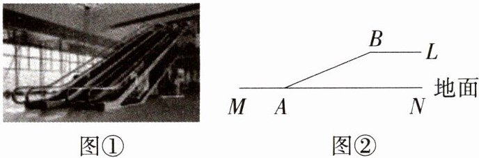 2.(2024山东菏泽单县三模)图①为某大型商场的自动扶梯,图②中的AB为从一楼到二楼的扶梯的侧面示意图.已知点A、B分别是自动扶梯的底端和顶端,自动扶梯AB的坡度为1:2,AB的长度是15 m.求图②中点B到一楼地面的高度.(M8201003)