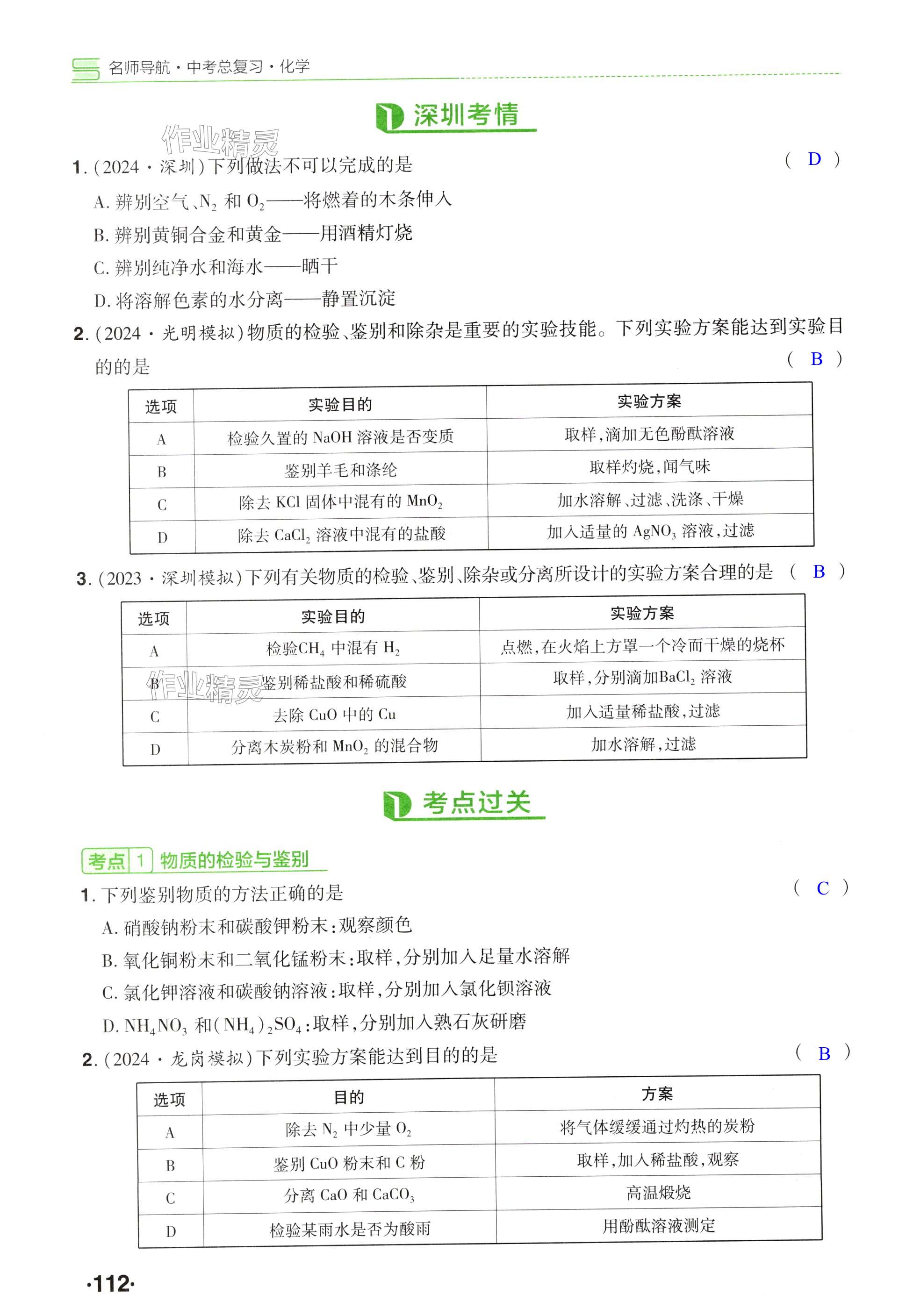 注:目前有些书本章节名称可能整理的还不是很完善,但都是按照顺序排列的,请同学们按照顺序仔细查找。练习册 2025年名师导航总复习化学深圳专版 答案主要是用来给同学们做完题方便对答案用的,请勿直接抄袭。