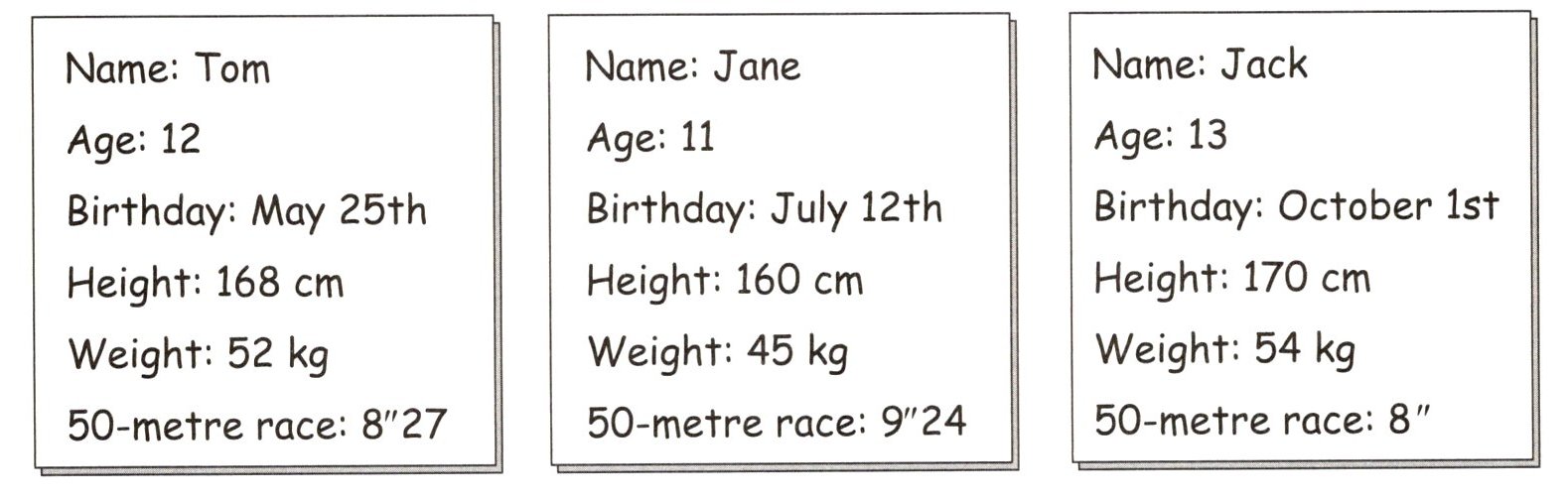 1.65 metres tall@@Two students@@Tom@@12 years old@@Tina