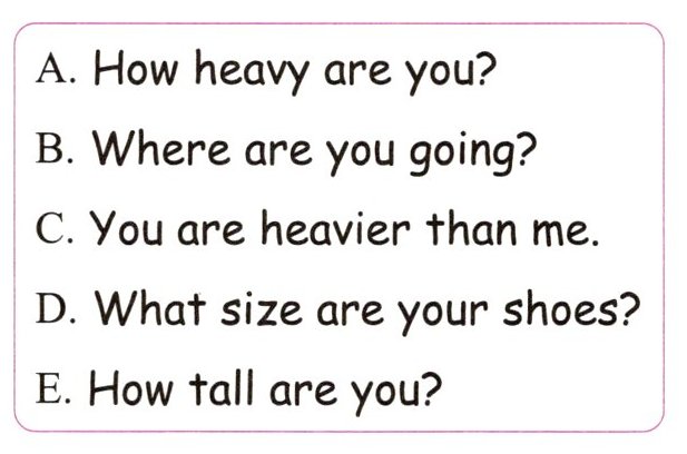 Bill: I'm 1.63 metres. But I think you are heavier. 4. _______