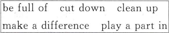 11. is full of 12. make a difference 13. clean up 14. play a part in 15. cut down