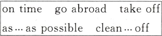 11. take off 12. goes abroad 13. clean; off 14. as; as possible 15. on time