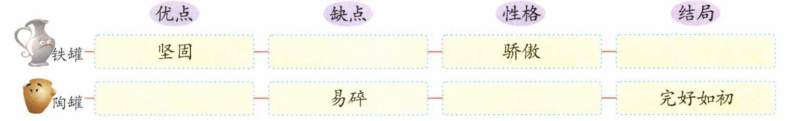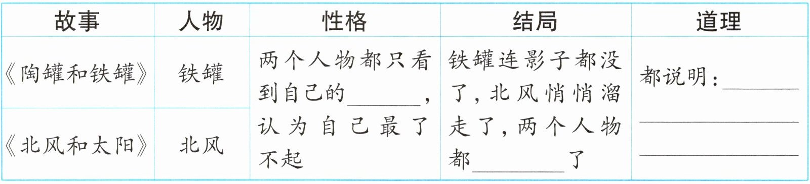 3.(语文要素)对比阅读《陶罐和铁罐》《北风和太阳》,想想故事中的北风和课文中的铁罐有什么相似之处,填一填。
