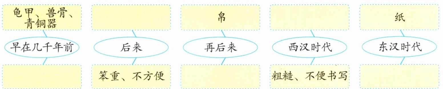(3) 蔡伦是怎样造纸的?请你找出选文中表示动作的词语,把造纸流程图补充完整。