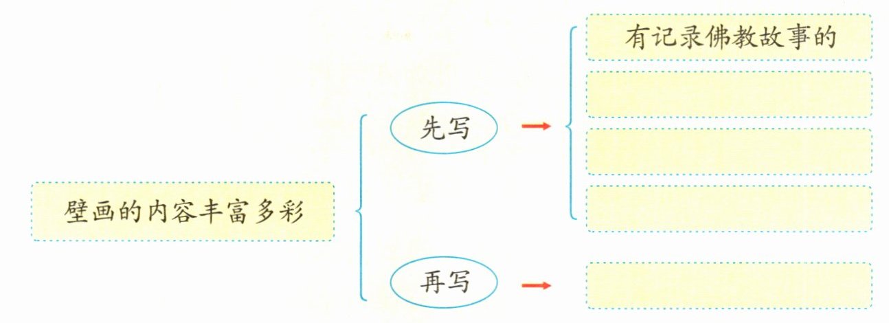 (3)(语文要素)第③段是怎么把莫高窟壁画内容的丰富多彩写清楚的?填一填。