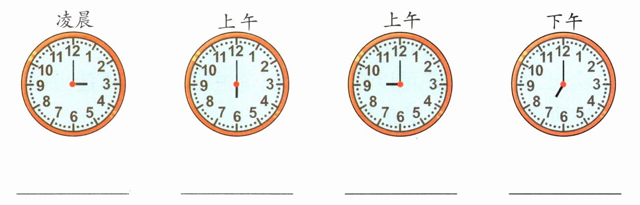 3. 根据下面的“时钟”上的时间,查一查,哪些花会在这些时间开放?写在下面的横线上。