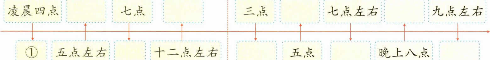 解析:本题考查对课文内容的理解。根据课文第一自然段中不同花的开放时间,完成填空即可。
