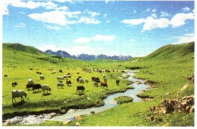 无边,一群群羊儿、牛儿在自由自在地吃草,一