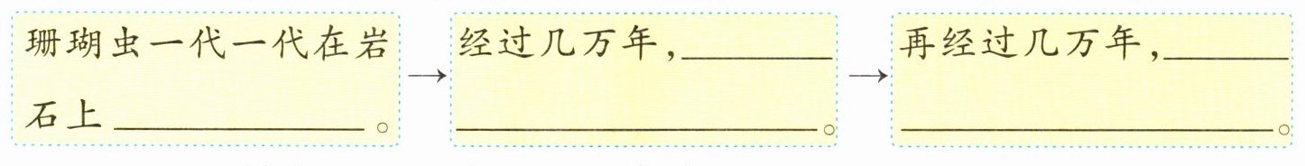 (2)根据短文内容,将珊瑚岛的形成过程补充完整。