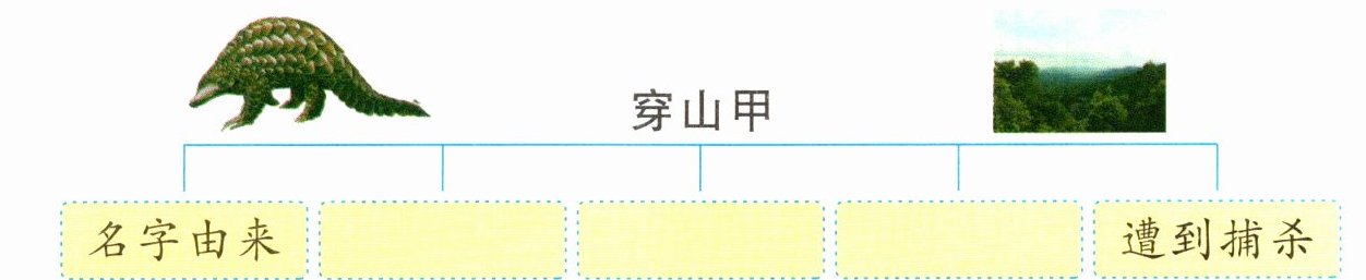 善打洞@@身披鳞甲@@×@@√@@×@@√@@长相,生活习惯,捕食方法@@示例:联系上下文可知,一只成年穿山甲一天可吃数万只白蚁。照此计算,一只穿山甲一年能保护200亩以上的山林不受白蚁侵害,所以穿山甲被称为“森林卫士”。@@示例:穿山甲是国家保护动物吗?@@利用互联网查阅资料。@@示例:没有买卖就没有伤害,不要为了眼前的利益而捕杀穿山甲,要考虑长远发展。保护穿山甲,就是保护生态平衡。