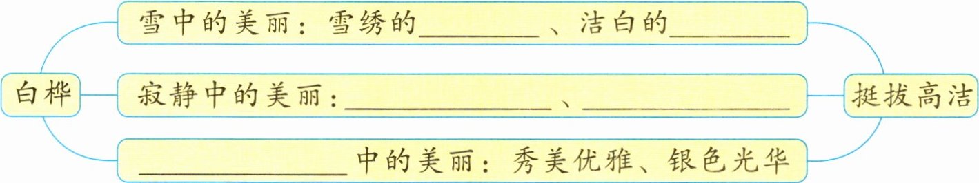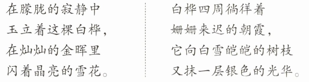 (4) 读一读,选取一个短语描述白桦树,说说它给你留下怎样的印象?