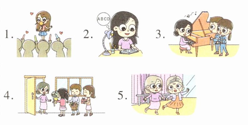 七、按图片的先后顺序用1—5给各语段排序,使其组成一个完整的故事。