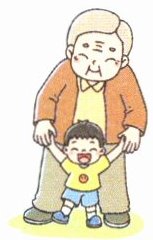 When John was a baby boy, Grandpa helped him learn to walk. "Hold on to my hands, John," said Grandpa. "Now one foot, now the other."
