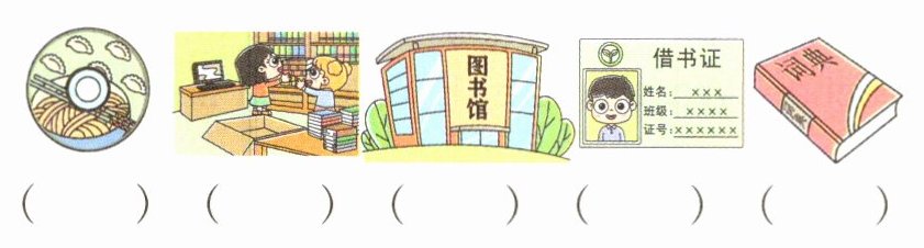 一、听录音,按所听顺序用1—5 给下列图片排序。